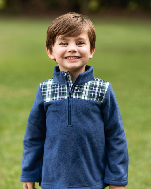 Navy And Green Plaid Fleece Pullover