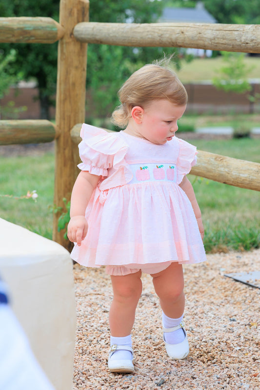 Pink Swiss Dot Smocked Pumpkin Diaper Set