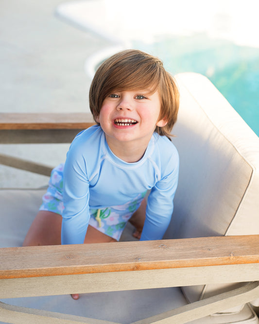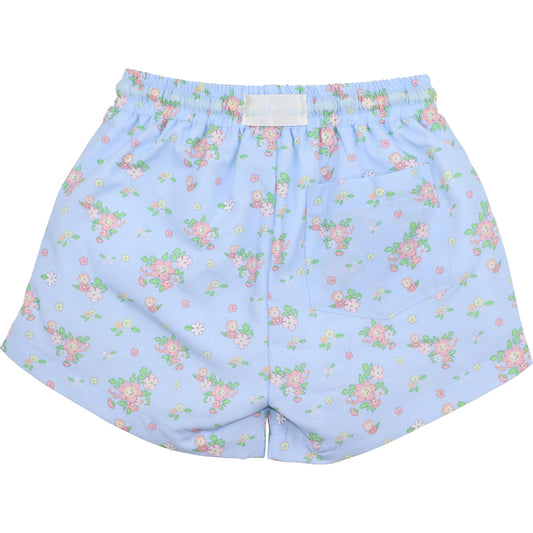 Blue Daisy Print Swim Trunks
