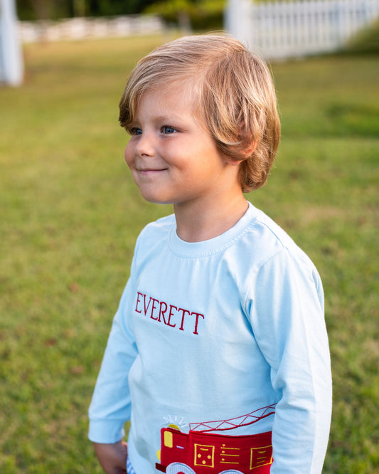 Blue Gingham Embroidered Firetruck Sweatshirt