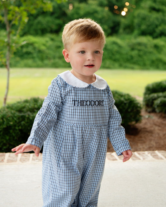 Navy Corduroy Embroidered Mallards Long Romper Set