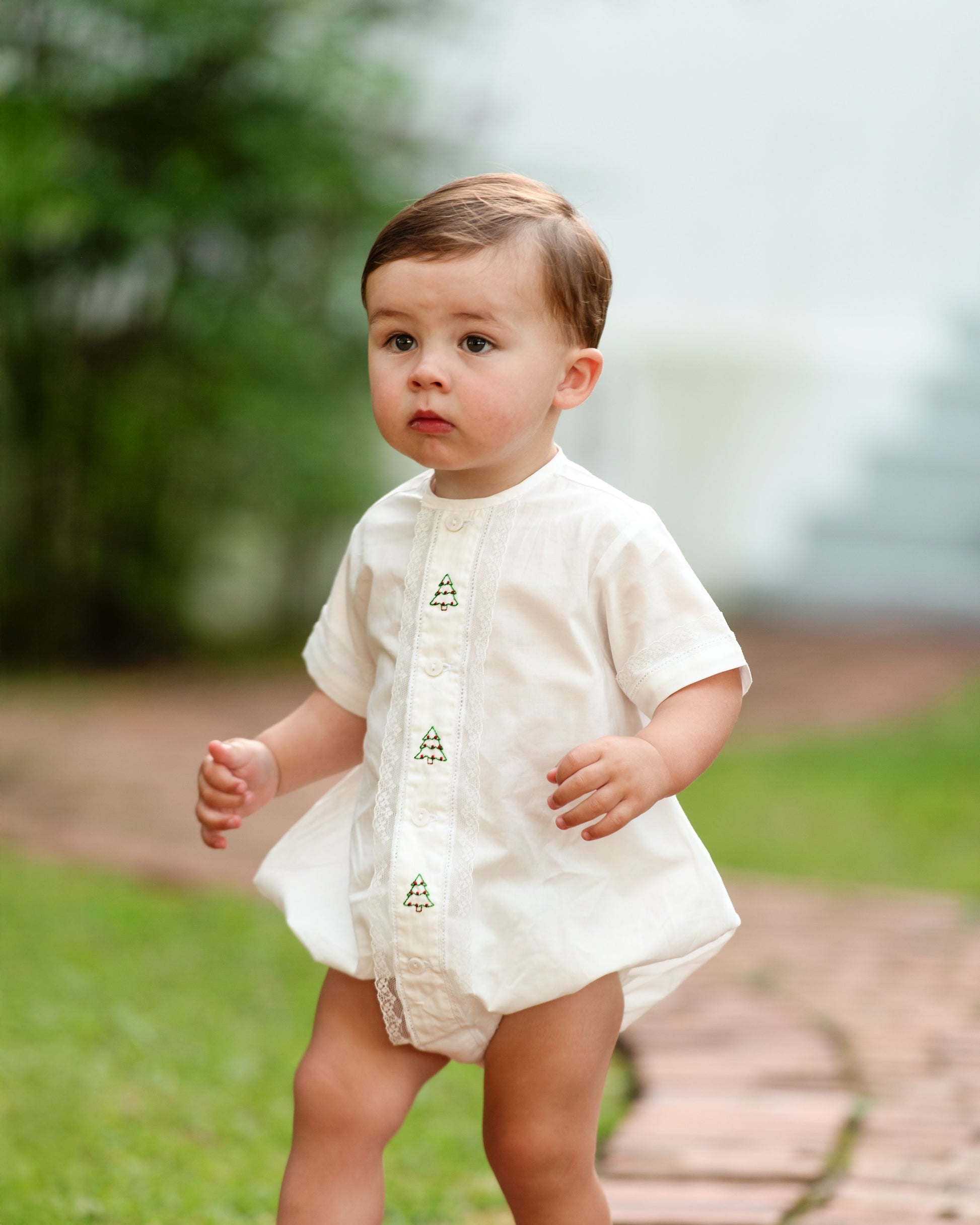 Boys Embroidered Christmas Tree Heirloom Bubble