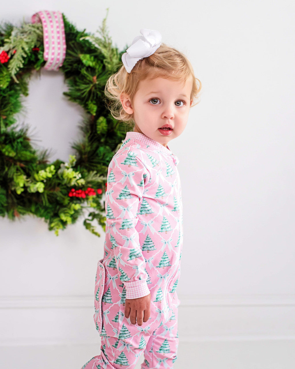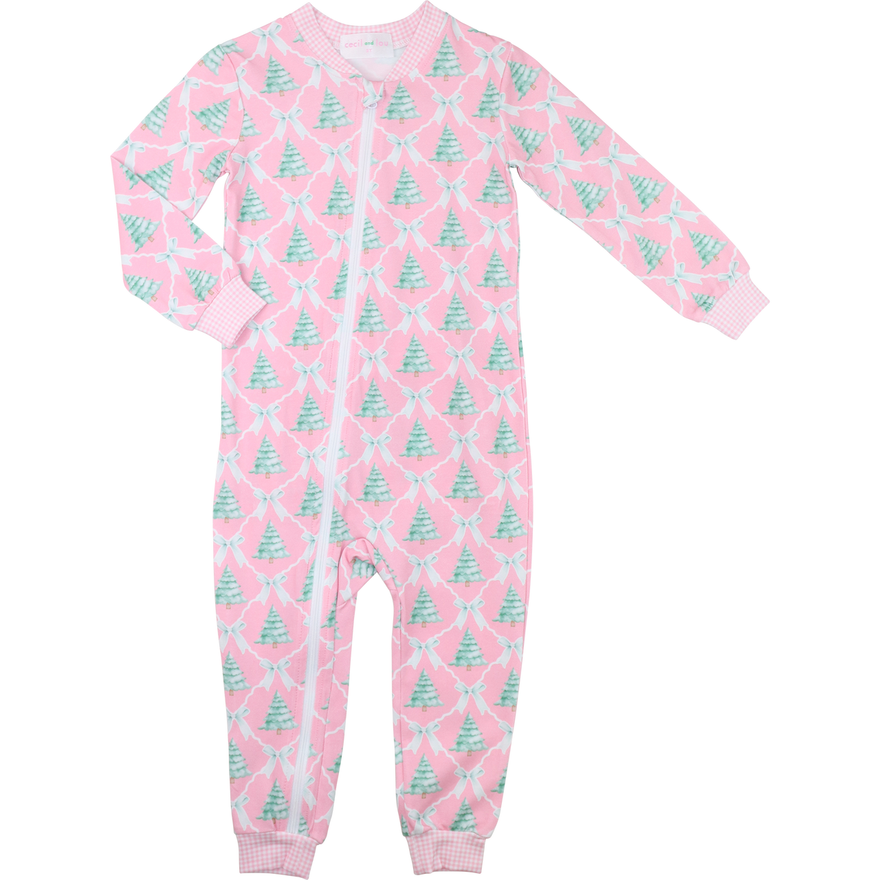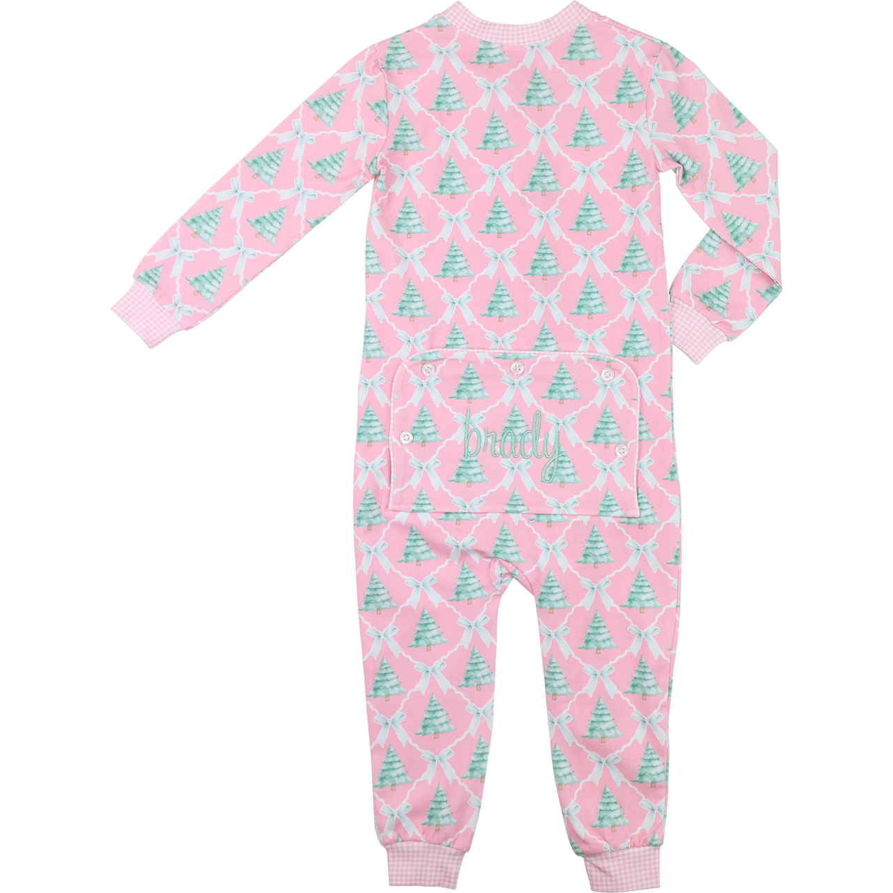 Pink And Green Knit Christmas Tree And Ribbon Zipper Pajamas