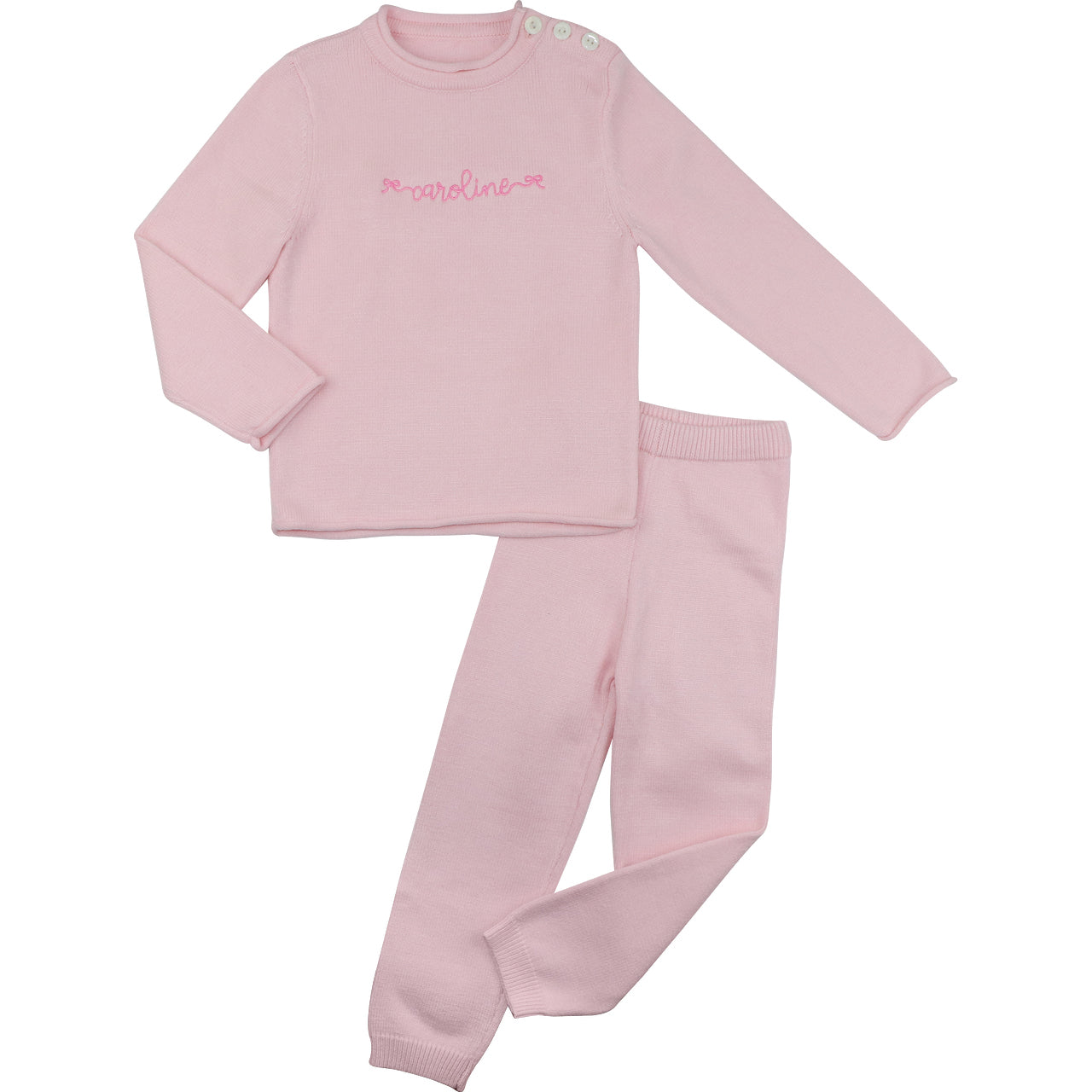 Wrap her in warmth and timeless style with this pink woven sweater set, perfect for cooler days and special outings. Featuring a soft pullover top with button shoulder detail and matching pants, this set offers both comfort and elegance.