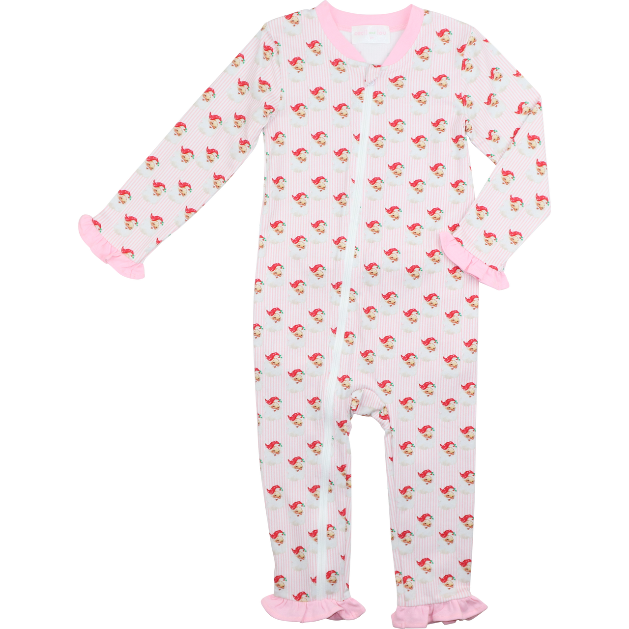 Pink And Red Gingham Knit Santa Face Zipper Pajamas